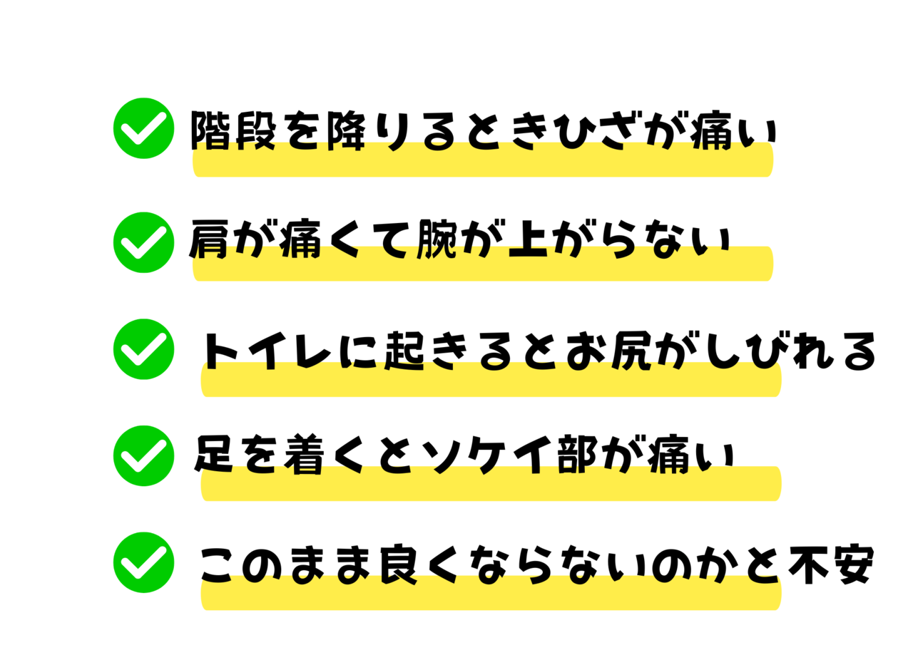 当院の整体は、からだの筋肉や関節に対して関節の癒着をはがして関節運動を正常化させます。そのため関節痛はもちろん、筋肉痛やしびれまで緩解していきます。