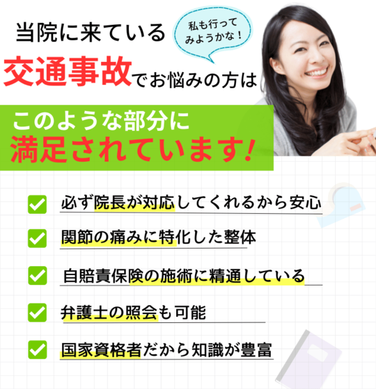 「不意に衝突された」などの交通事故による体のダメージは、想像をはるかに超えます。普段の生活では受けることのない衝撃が関節や筋肉、神経のまで強く影響を残すため、当事者にしかわからない痛みやしびれ、不快感がしばらく続きます。