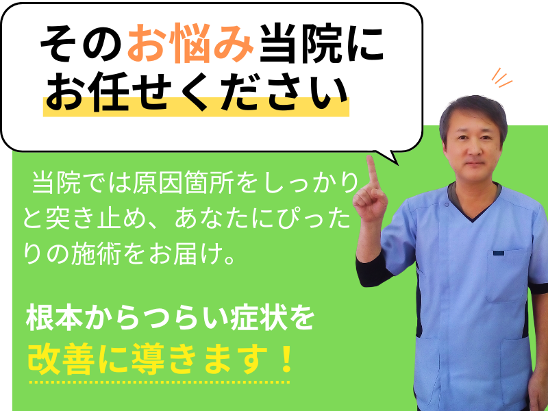 当院では、お客さまのおからだのことを第一に考えており、無理に通院を長引かせるような営業行為は一切いたしません。