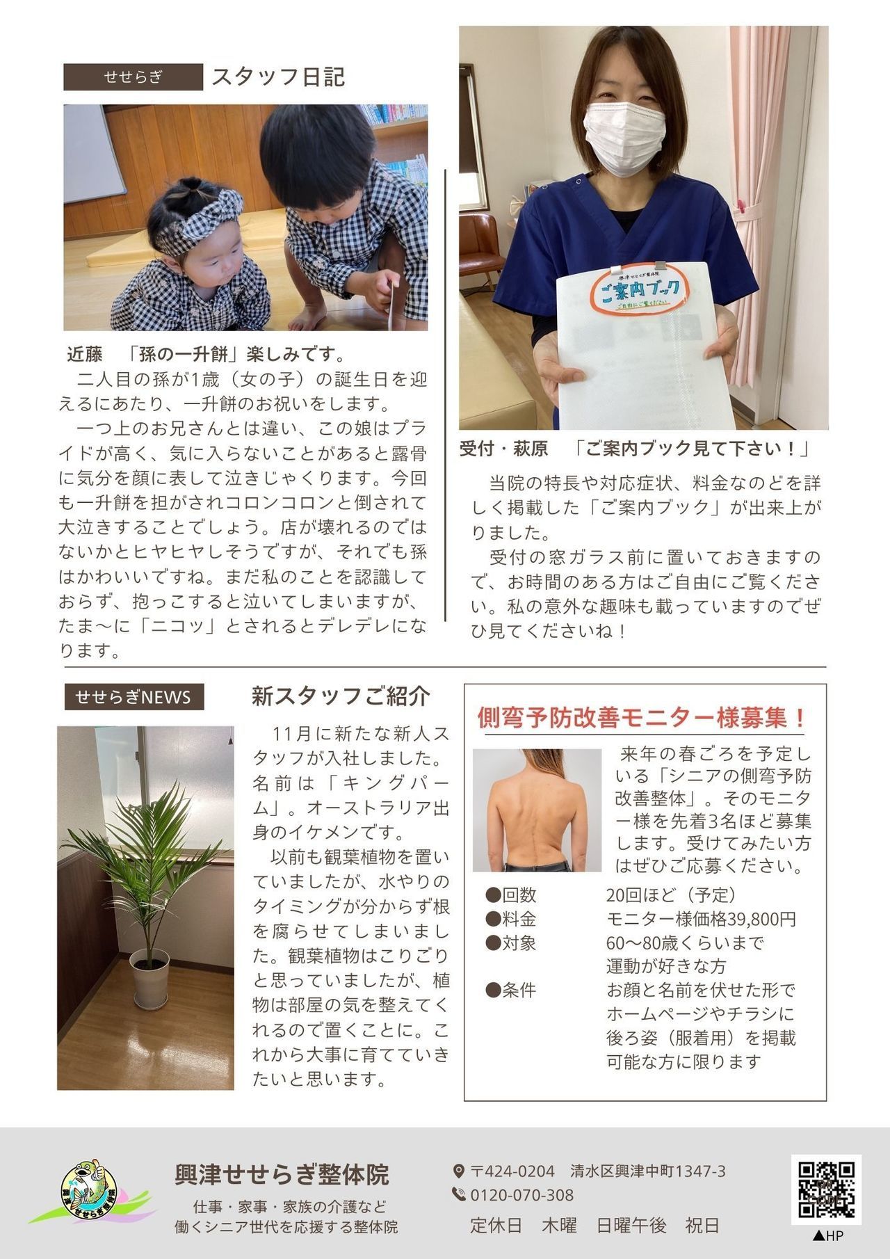 2025年冬号のニュースレターが出来上がりました。今回の特集は、「シニアの側弯①」です。
