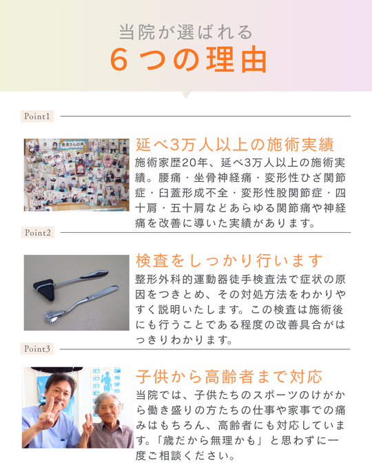 現在、「長年続く肩の痛み解消キャンペーンを開催中です。詳しくは「開催中のキャンペーン」ページをご覧ください。▶定員になりましたので終了いたしました。
