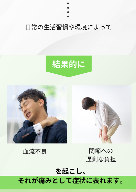 当院では、お客さまのおからだのことを第一に考えており、無理に通院を長引かせるような営業行為は一切いたしません。