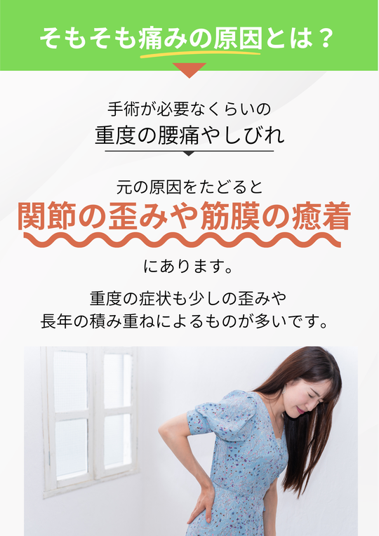 ただ、この癒着に関しては、シップを張っても、注射を打っても、薬も飲んでもはがれたりはしません。物理的にはがすという工程を踏まないとなかなか改善していきません。