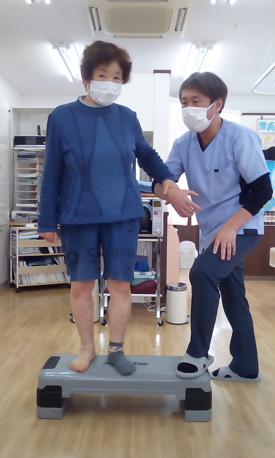 関節の腫れは毎回の施術とおうちで行っていただいた簡単な運動でみるみる改善。その後、施術後の段差の乗り降り練習では、はじめこそ「どっこいしょ!」と掛け声を出してようやく上がれるほどでしたが、次第にスピードもアップして10回行っても全く痛みがなくなるぐらいまで回復。静岡の病院まで電車を乗り継ぎ4000歩歩いても水はたまらなくなりました。
