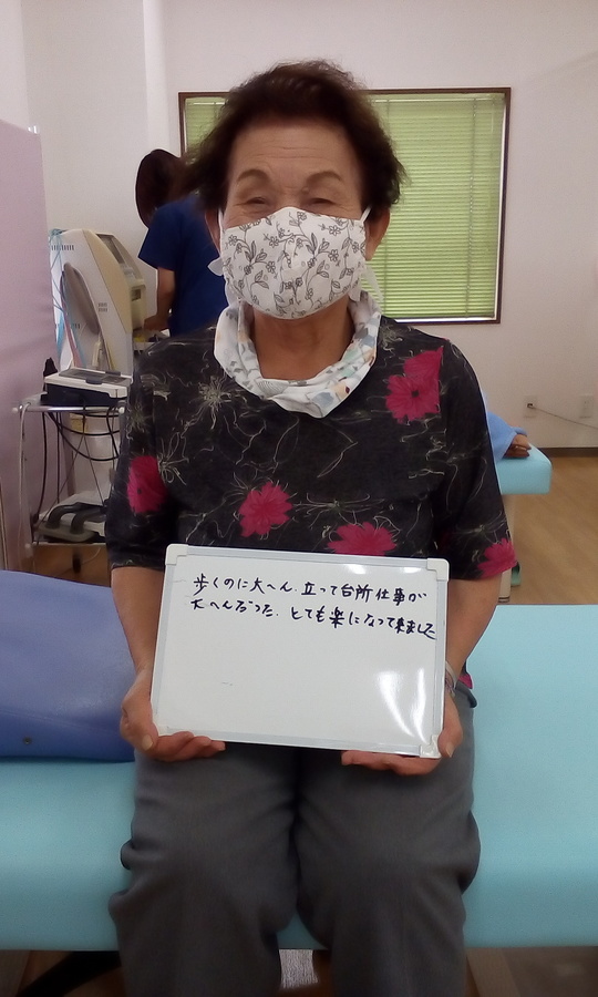 「歩くのに大へん、立って台所仕事が大へんだった。とても楽になって来ました。」