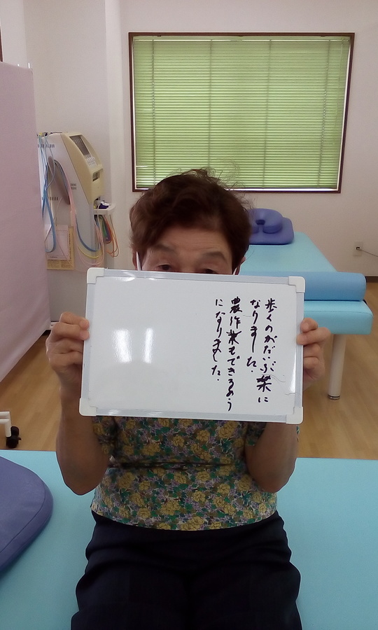「歩くのがだいぶ楽になりました。農作業ができるようになりました。」